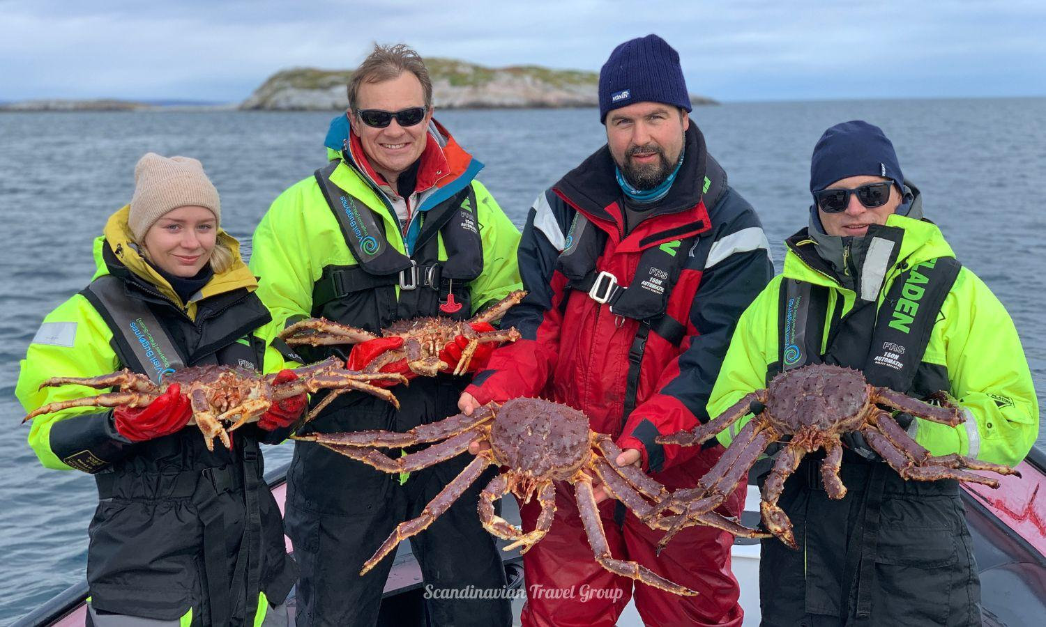 - 早餐后,我们将前往希尔克内斯,乘坐雪地摩托进行惊险刺激的帝王蟹之旅(两人共用一辆雪地摩托)。尽情享受丰盛的帝王蟹自助餐,尽情享用。
