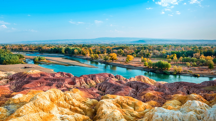 - 五彩滩一河两岸,南北各异,是国家4A级景区。五彩滩地貌特殊,长期干燥地带,属于典型的彩色丘陵。
