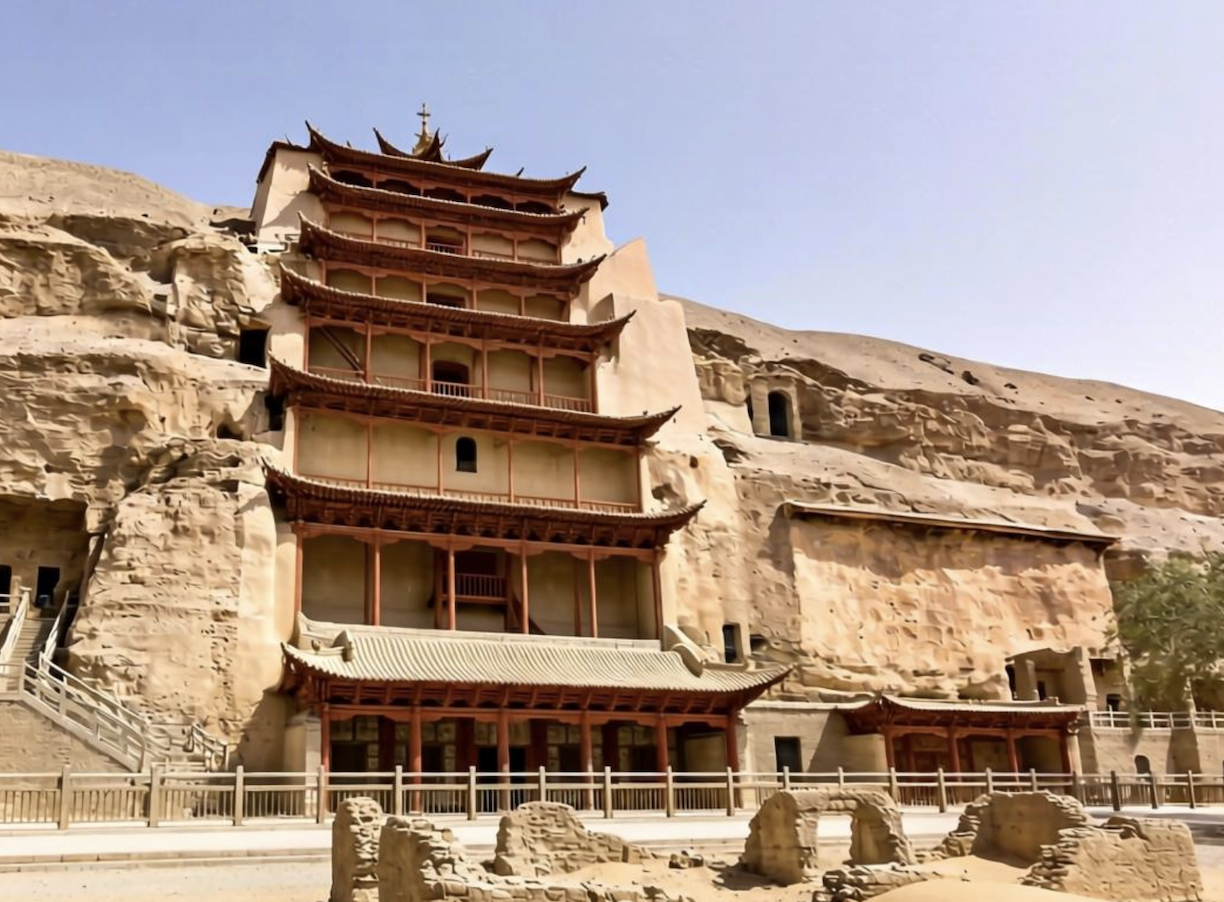 - Mogao Grottoes known as the Thousand Buddha Cave, has nine floors, three floors, the Sutra Cave, and the Sutra Cave Exhibition Hall. There are flying Buddha statues, musicians, fairies, etc. everywhere. Founded in the Pre-Qin period of the Sixteen Kingdoms, it is the largest and richest Buddhist art site in the world. Together with Yungang Grottoes and Longmen Grottoes, it is listed as the three largest grottoes in China.