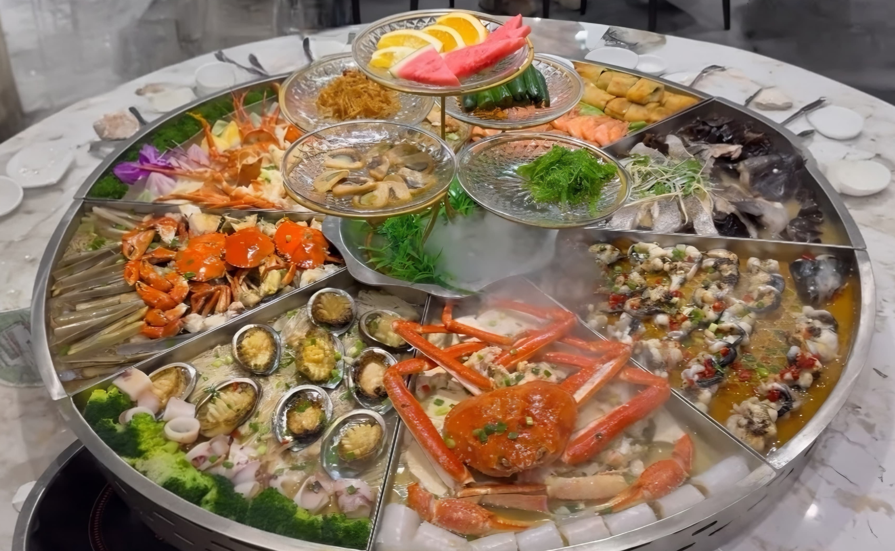 午:妈祖寿面;晚:帝王蟹龙虾鲍鱼大拼盘加红酒