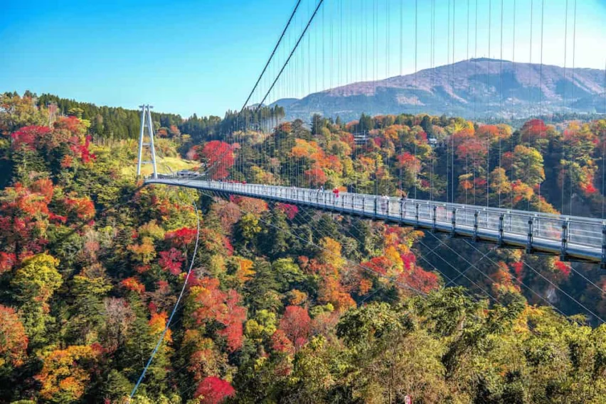 - Kokonoe Yume Otsuribashi Crossing the Kokonoe Dream Suspension Bridge in western Oita Prefecture is like walking in the sky. It is Japan's longest and highest pedestrian bridge, and offers a panoramic view of Oita's green countryside, two waterfalls, the Naruko River, and a 173-meter-deep valley below.