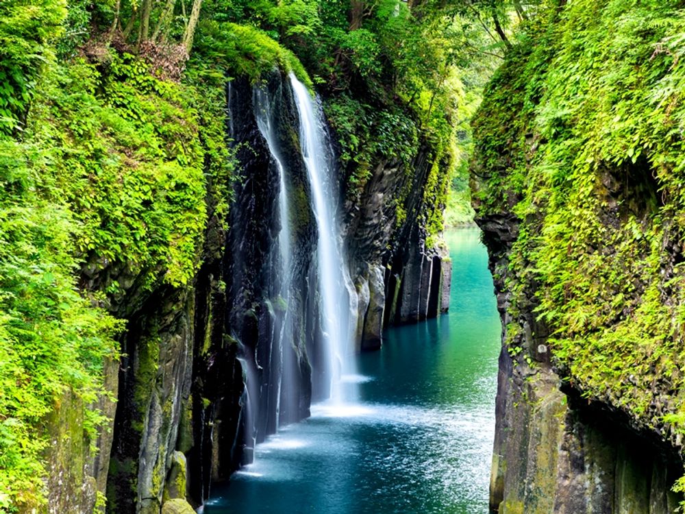 - Aso Kusasenri Observatory is a grassland of about 1km located on the Aso surrounding scenery line. The magnificent landscape created by the Mt. Hatatake in the background and the pond formed by rainwater. When visiting Kyushu, you can visit Takachiho Gorge in Miyazaki Prefecture to enjoy such a moving scenery. Takachiho Gorge is a columnar jointed gorge formed by the rapid cooling of ancient lava flows.
