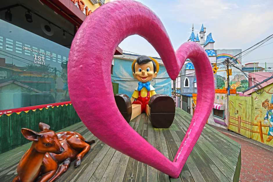 - Songwol-dong Fairy Tale Village, an extremely lovely fairy tale world, where the walls of buildings are also painted with fairy tales.