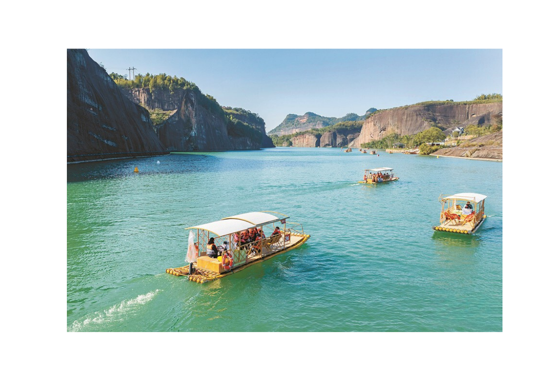 - Feitian Mountain (Includes entrance fee + round-trip sightseeing bus + bamboo raft + cruise) Experience the dual wonders of land and water in the Danxia landform of Chenzhou! Explore the Jiulong Water Village by bamboo raft, climb Juxiantai to view the "Sleeping Beauty" peak; pass through the"First Gate Under Heaven" natural stone bridge. Hike through the Danxia Gallery, where the natural rock patterns resemble murals of flying apsaras.