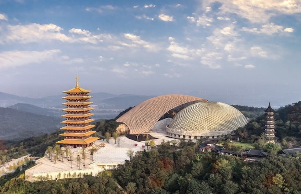- 牛首山文化旅游区,自然风光秀美绮丽,素有“春⽜⾸”之美誉。世间唯⼀、当世仅存的释迦牟尼佛顶⻣舍利⼦⻓期供奉地。