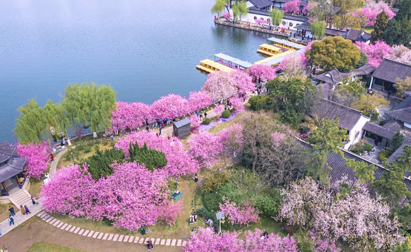 - Mochou Lake, the "First of the Forty-Eight Scenic Spots of Jinling," to witness the magnificent crabapple blossoms. Crabapple trees bloom along the lake, their buds a vibrant red.