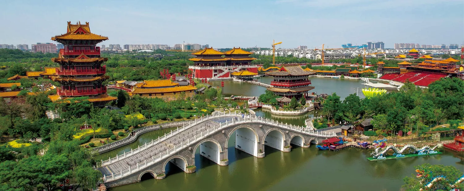 - Qingming Riverside Landscape Garden, large-scale Song Dynasty historical, cultural theme park, a 1:1 replica of the famous Chinese painting "Along the River During the Qingming Festival."