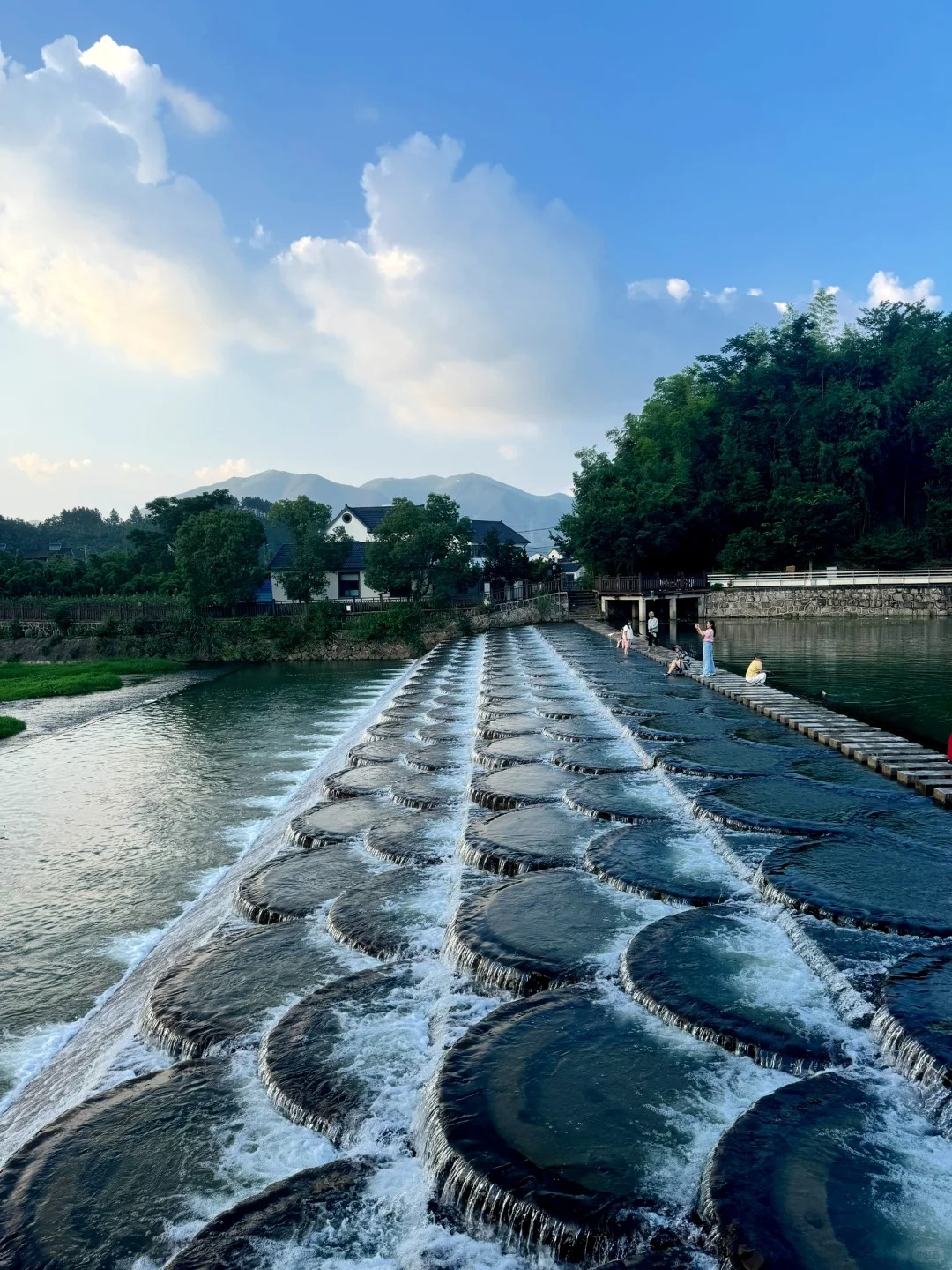 - 打卡网红鱼麟坝,鱼鳞形状的堤坝。