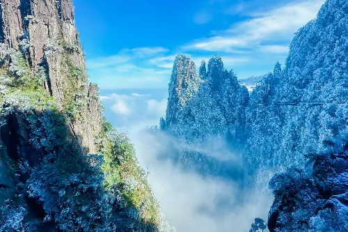 - Visit Mangshan Wuzhifeng Scenic Area, experience painless mountain climbing, ascend by escalator and descend by cable car. There are uniquely shaped pines, strange rocks, andprecipitous peaks everywhere; sea of clouds, waterfalls, and hotsprings are also worth seeing; and exotic flowers, rare herbs, andrare birds and animals can be seen from time to time.