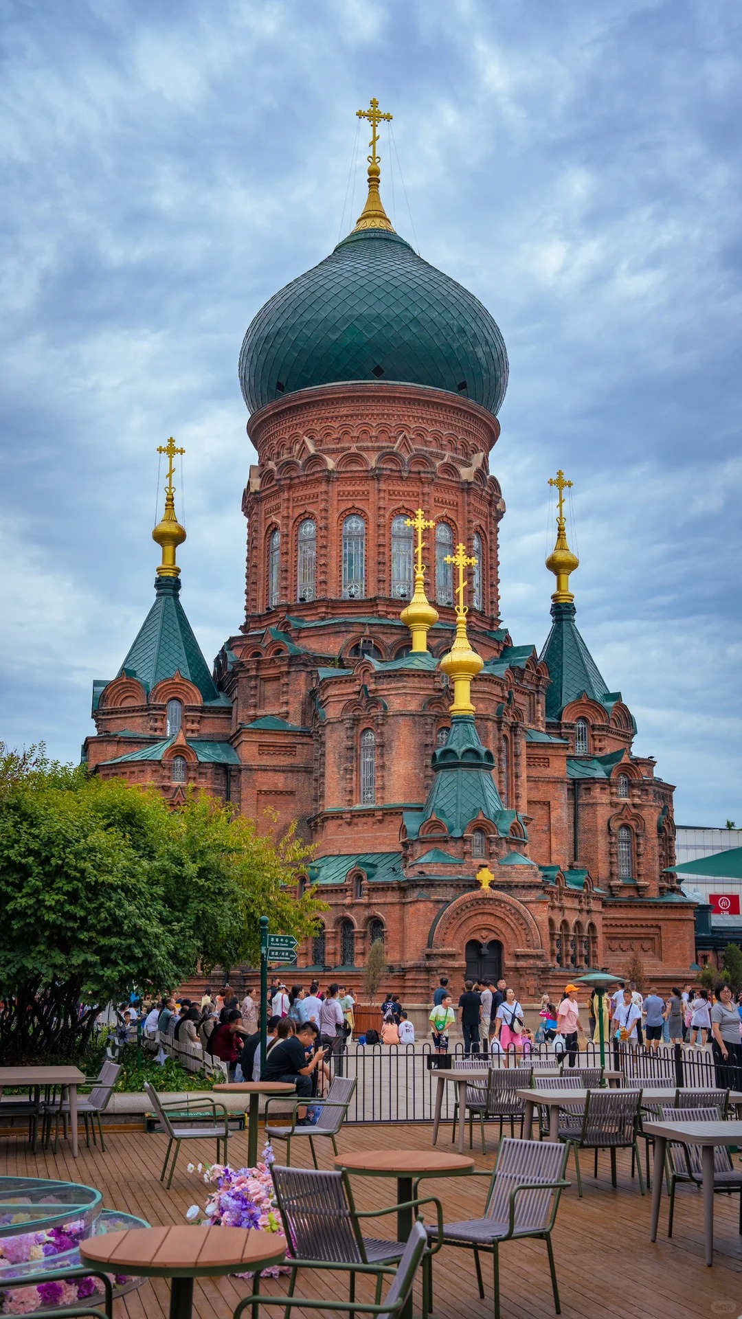 - 圣索菲亚教堂广场,是目前中国保存较为完整的拜占庭式建筑。