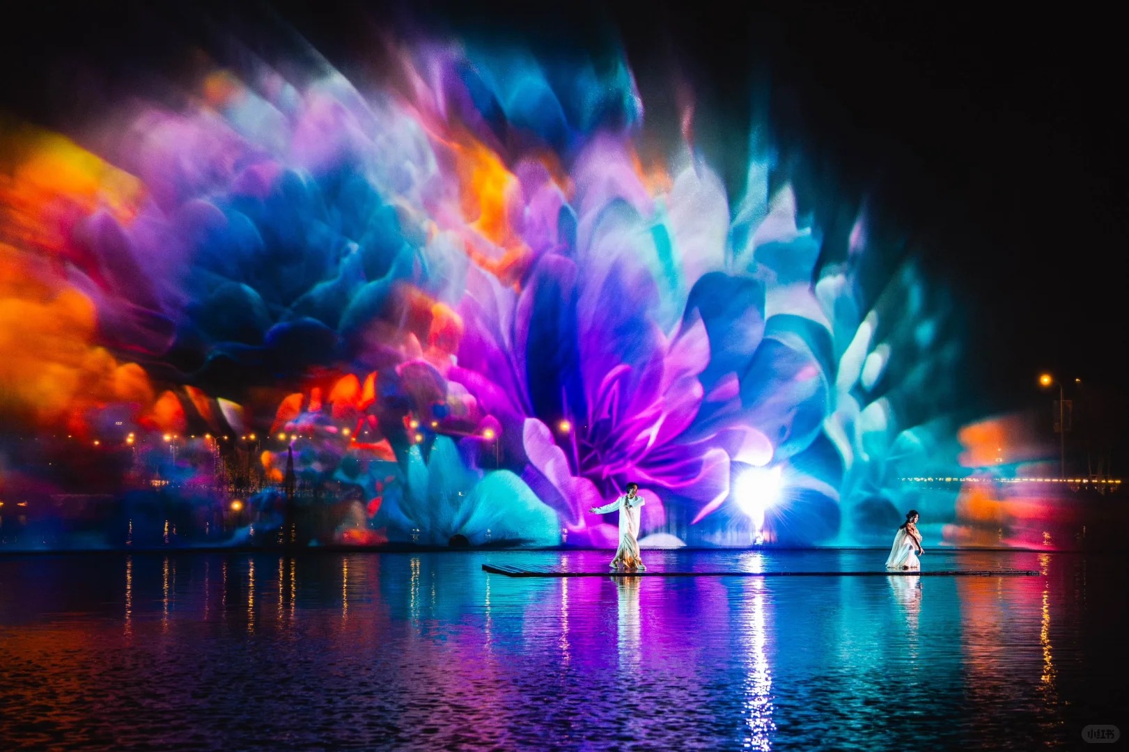 - 晚上可欣赏古城夜景--七重水幕灯光秀,当沱江两岸万家灯⽕次第点亮,到处流光溢彩。